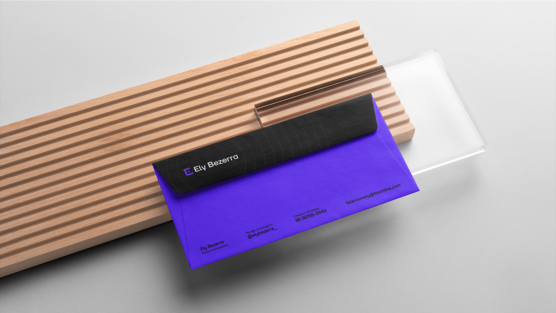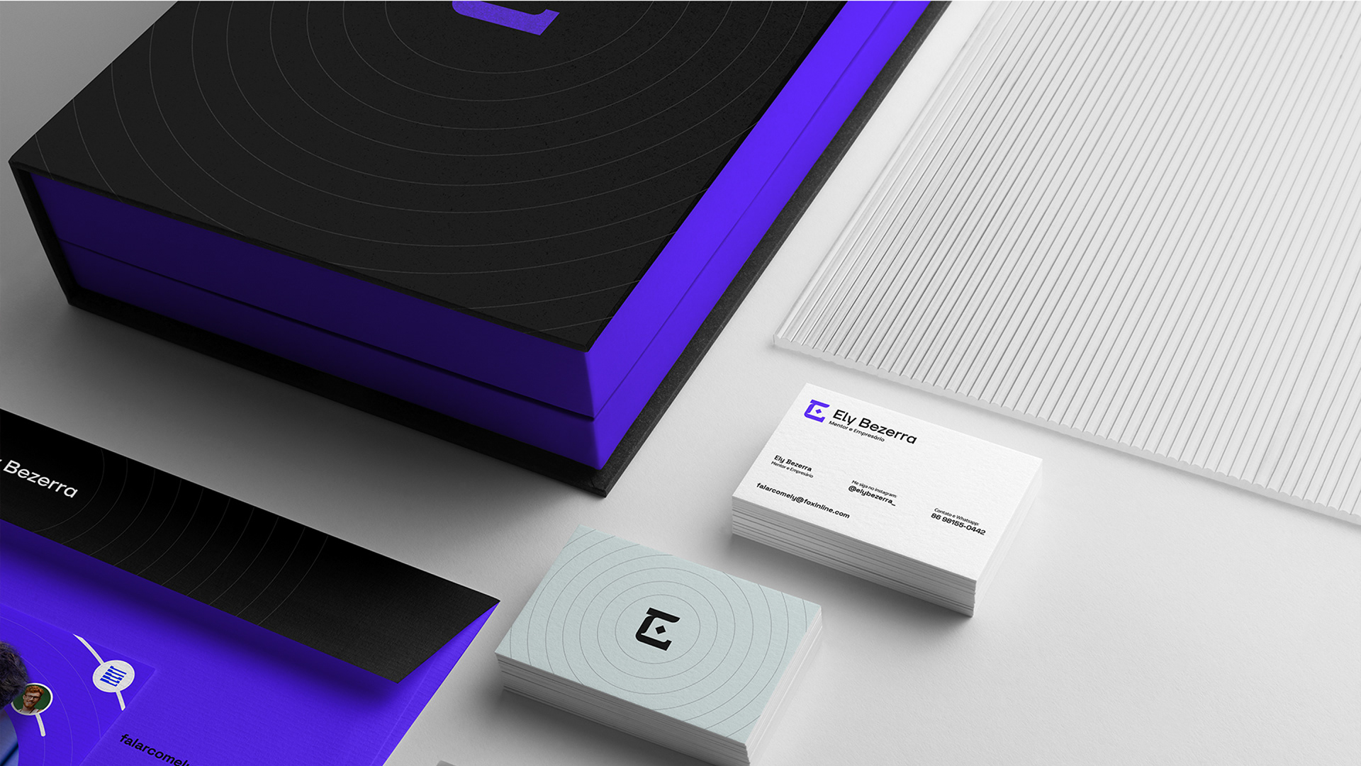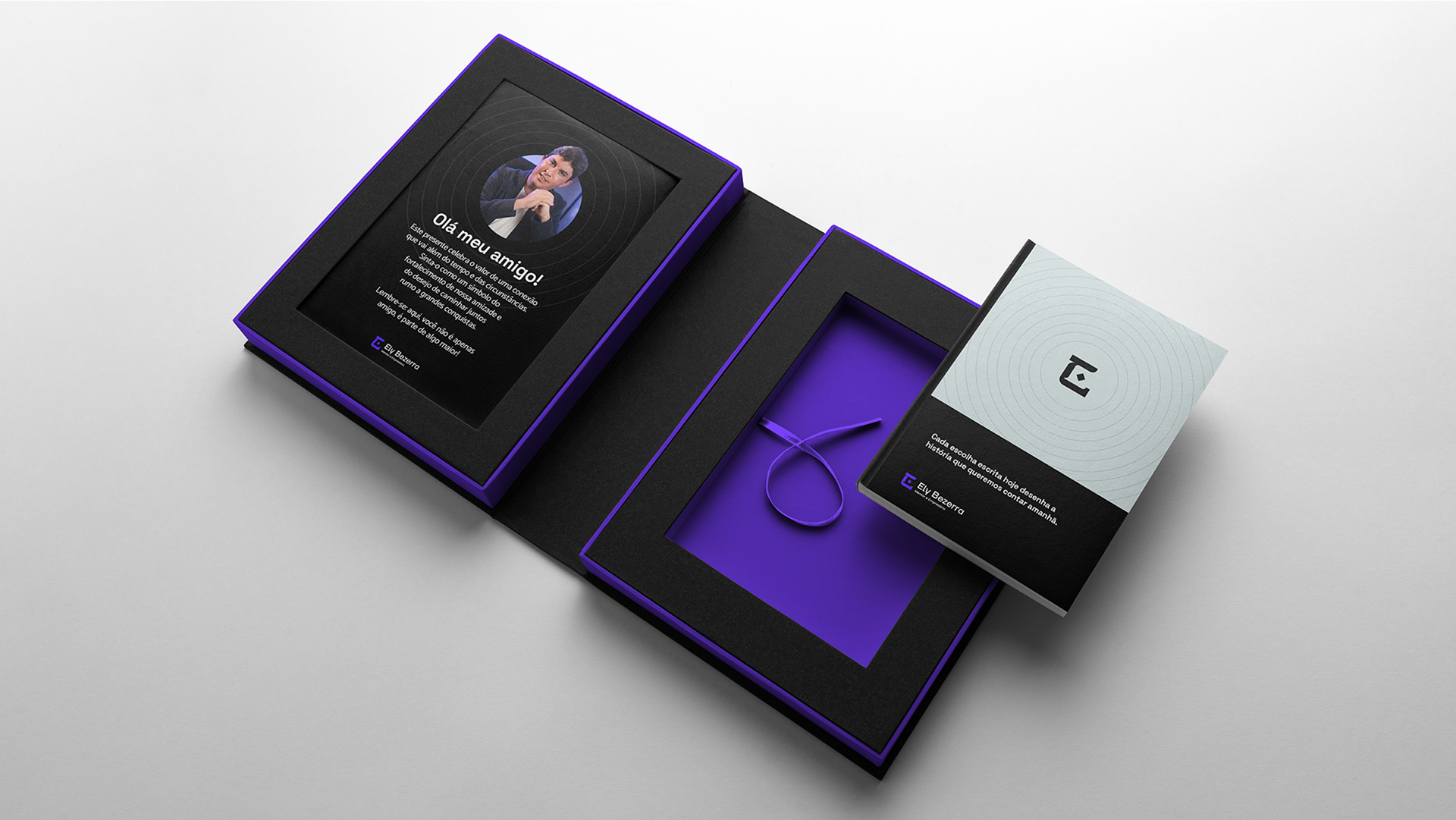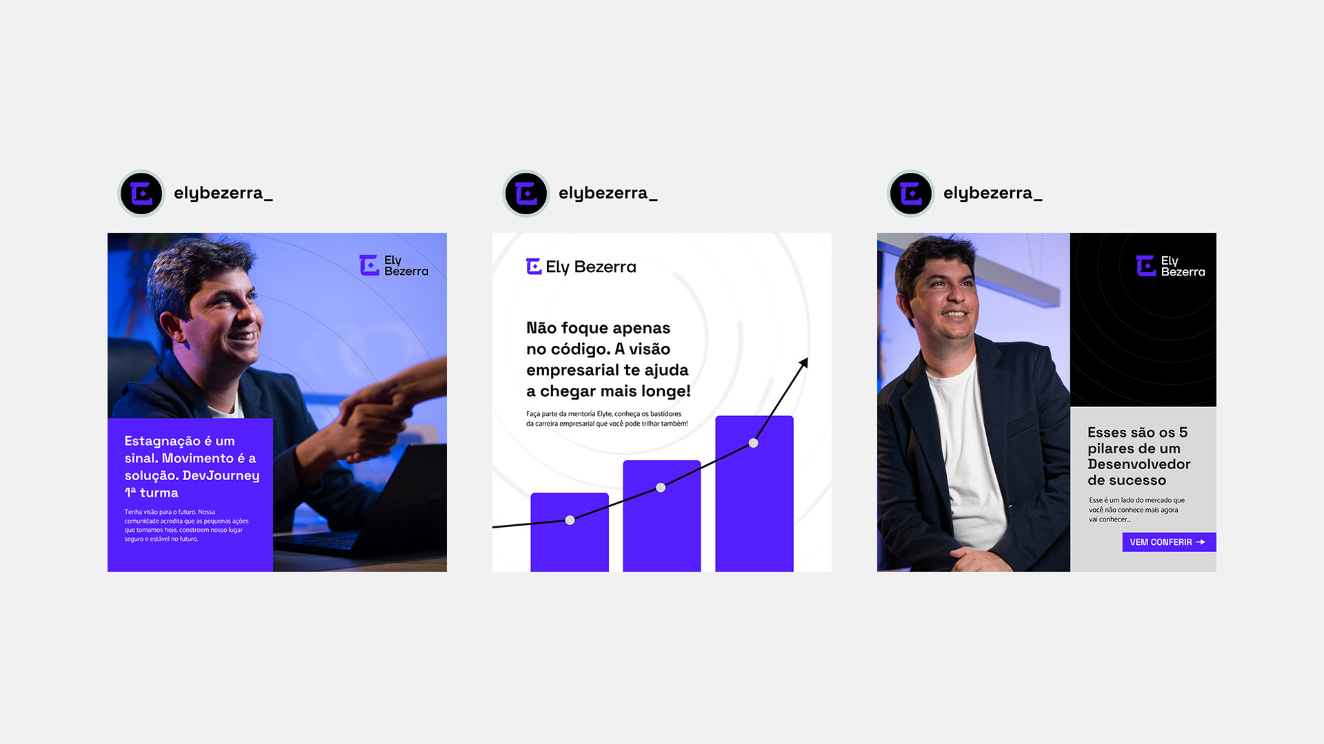Por isso o roxo se tornou a cor base. Ele traduz conhecimento, profundidade e essa capacidade única do Ely de criar o novo com naturalidade.