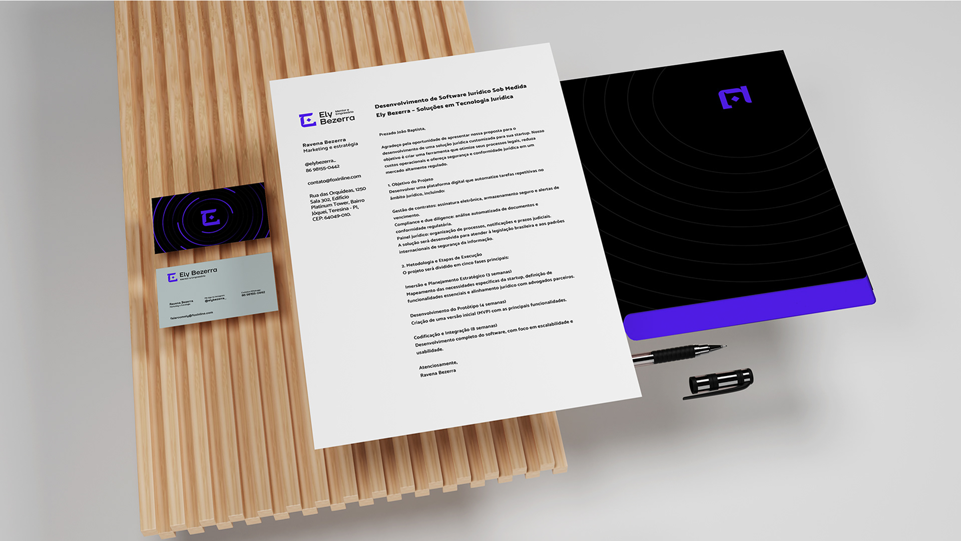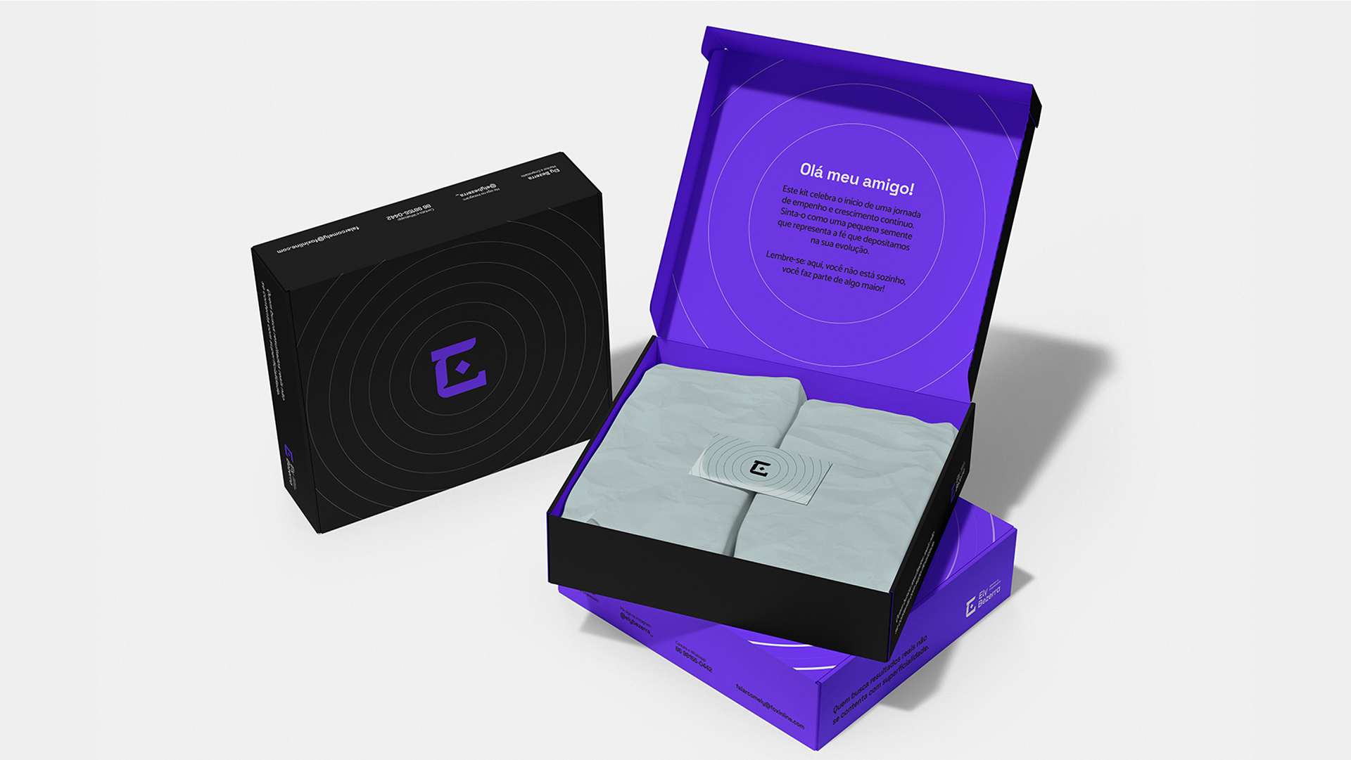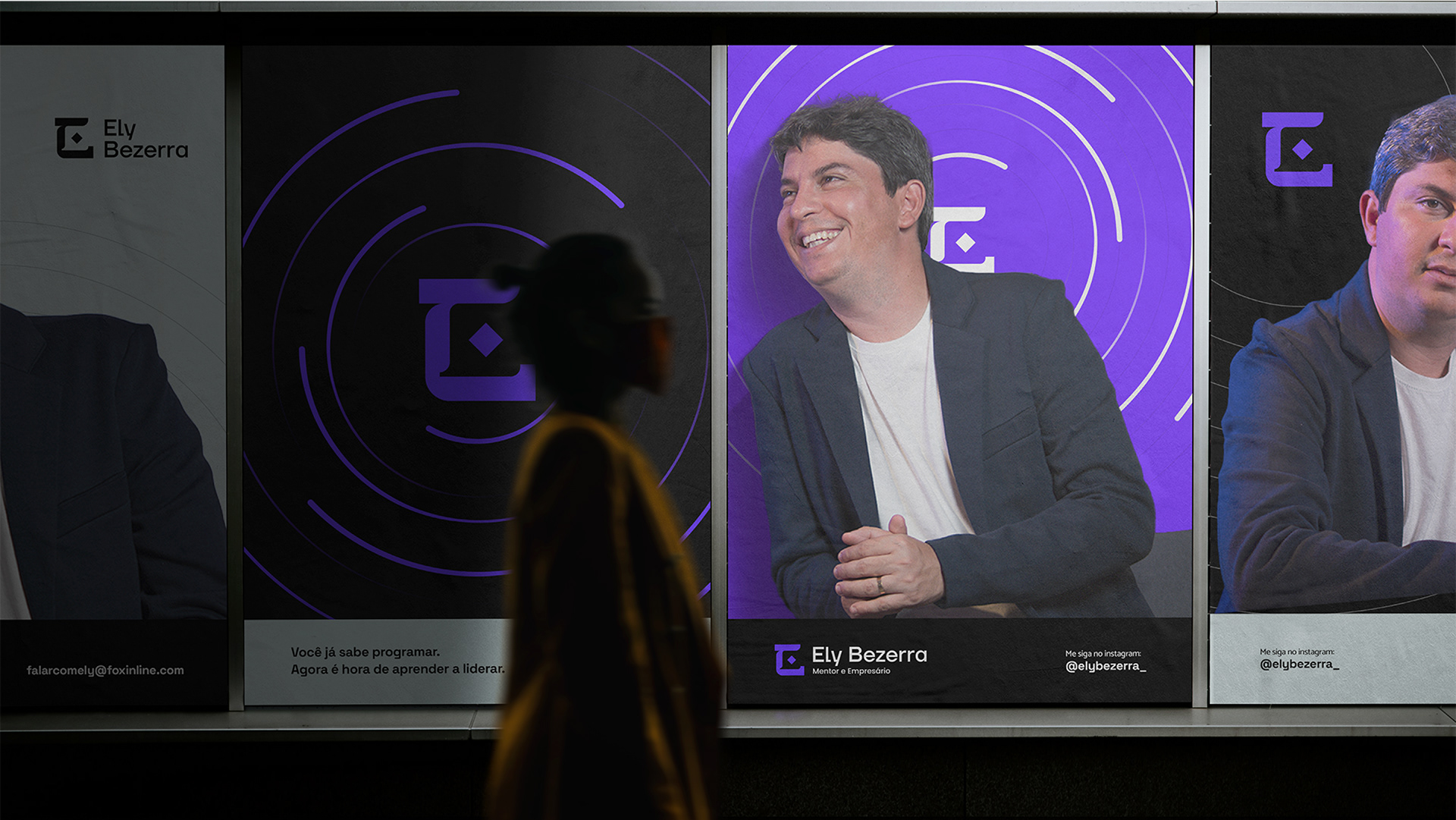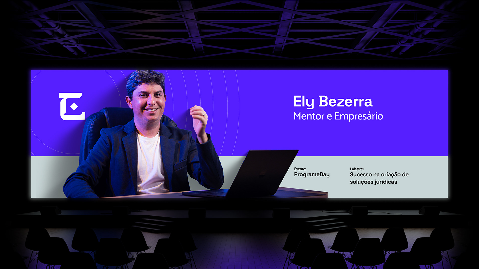 Por isso o roxo se tornou a cor base. Ele traduz conhecimento, profundidade e essa capacidade única do Ely de criar o novo com naturalidade.