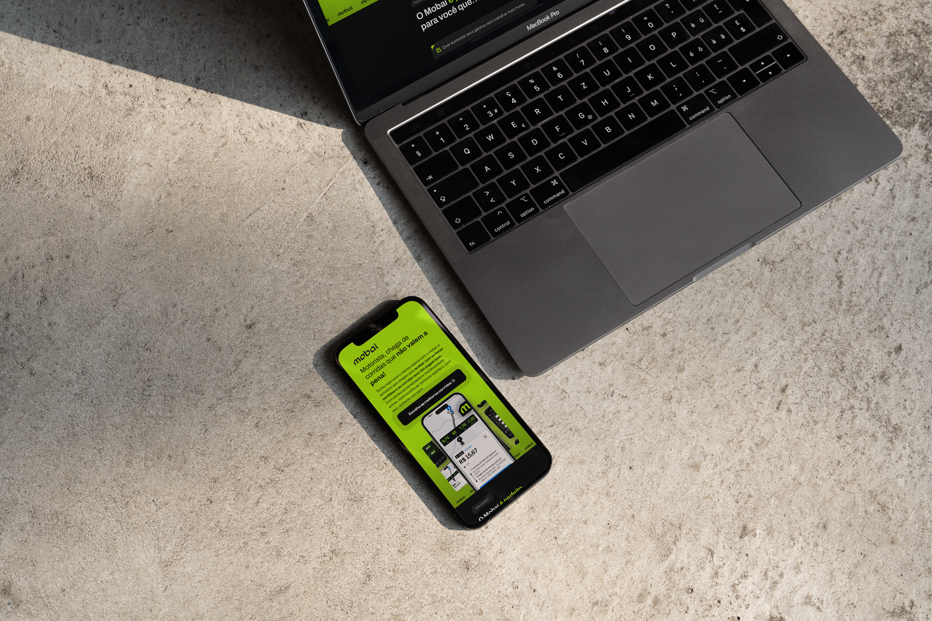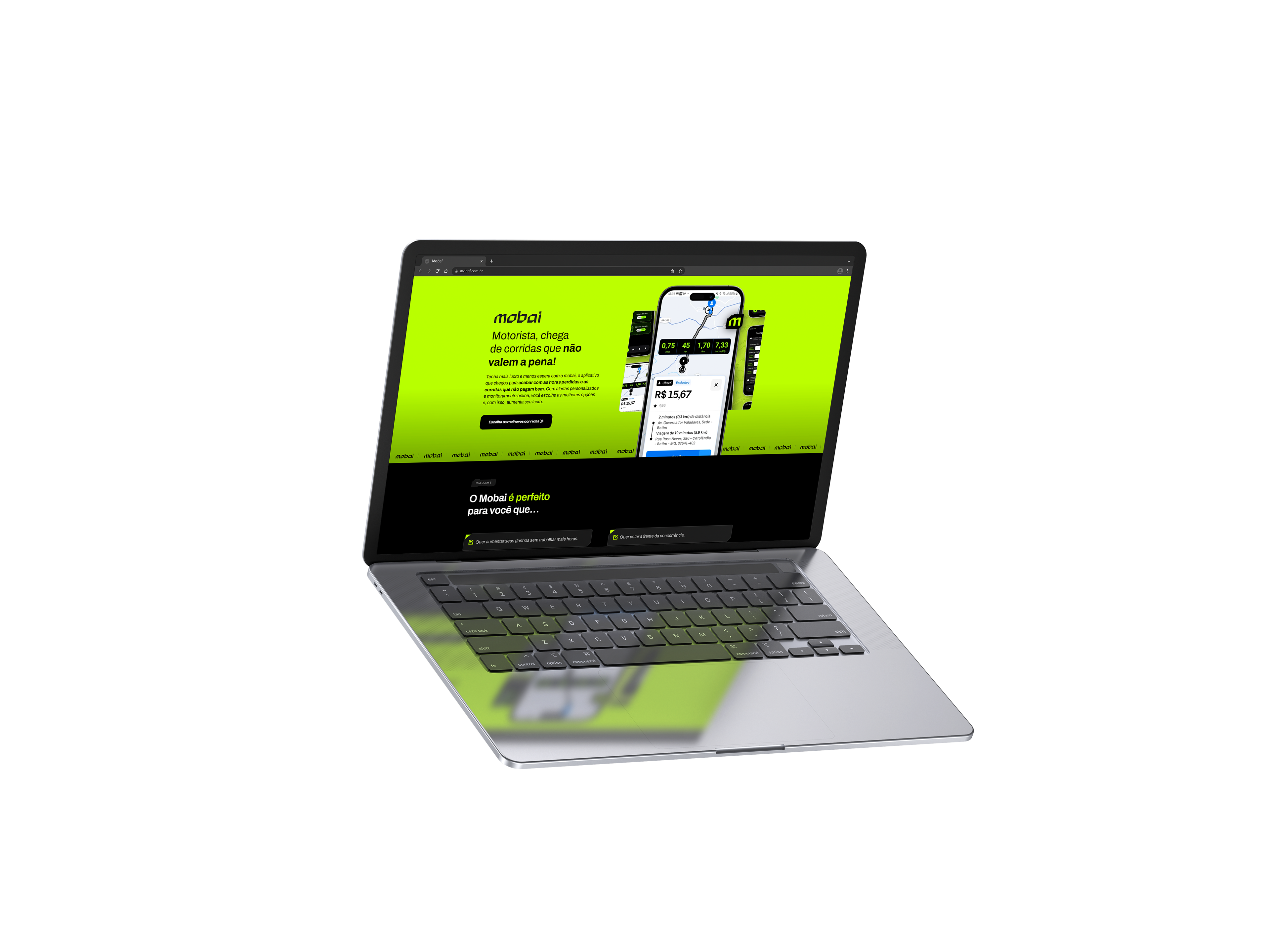 Cores, tipografia e estrutura foram pensadas para criar uma experiência funcional, intuitiva e memorável, posicionando a Mobai como uma extensão natural da marca-mãe, mas com personalidade própria.